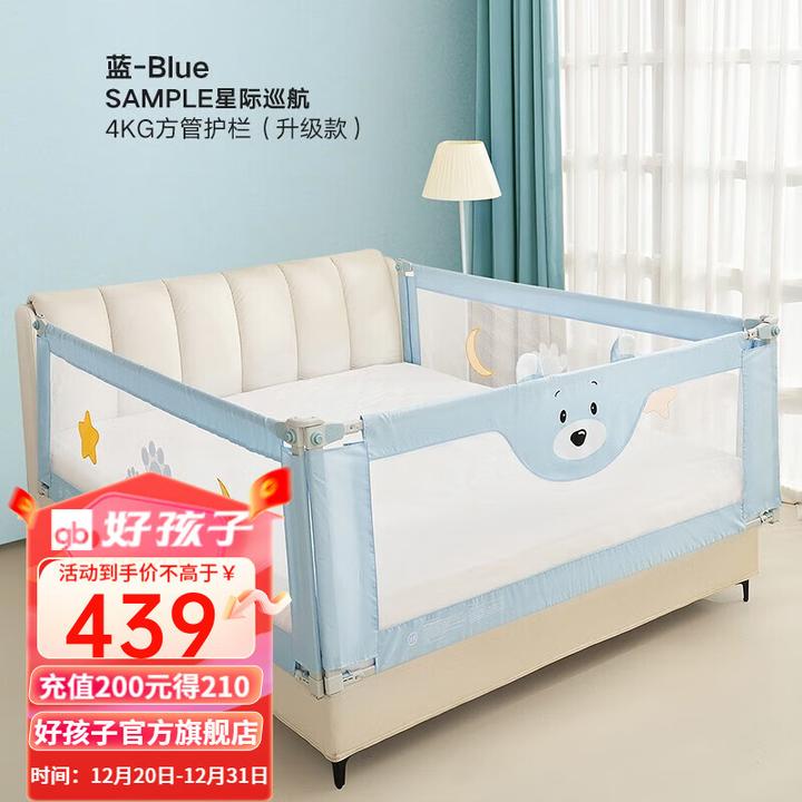 A、好孩子(gb)床围栏婴儿童床挡板宝宝床上防摔床边护栏升降床护防夹防护栏 【星际巡航】升级款-蓝色三片装 1.8米床型(1.8*2.0*2.0米)