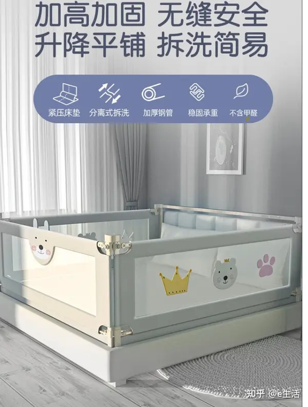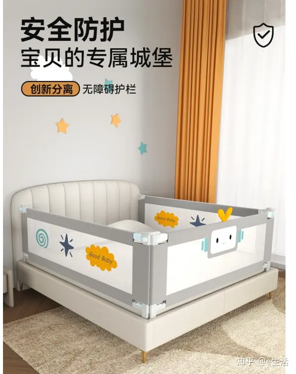 2、根据孩子的年龄和体型选择适合的儿童护栏,确保护栏的高度、宽度和长度符合标准,能够有效地防止孩子爬出。同时,考虑护栏的形状,尽量选择圆角设计,避免孩子磕碰。