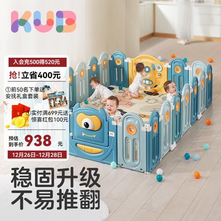 B、可优比(KUB)【可折叠收纳】宝宝游戏围栏防护栏婴儿儿童地上家用室内护栏 围栏【16+2】+2CM厚爬行垫