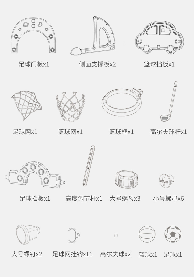 S65A 小汽车款多功能篮球足球高尔夫球架(货号:9065A)