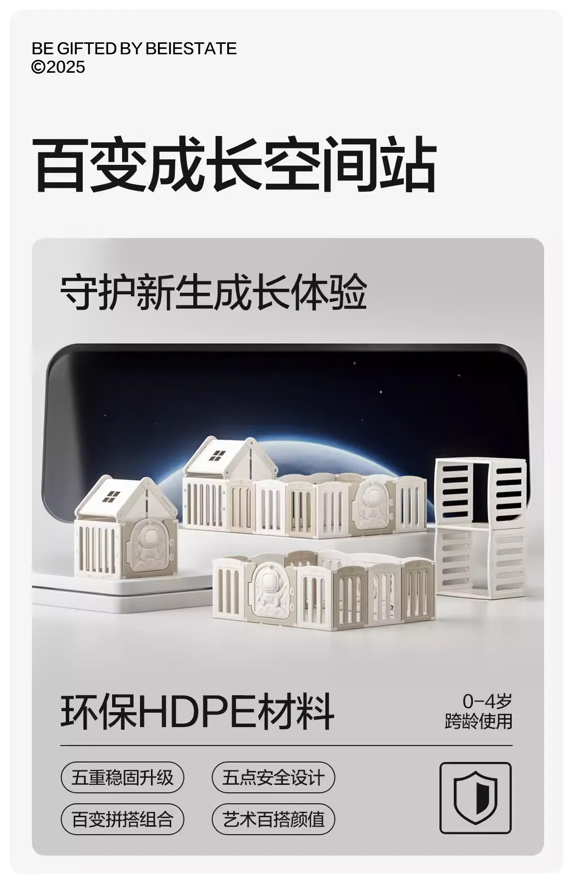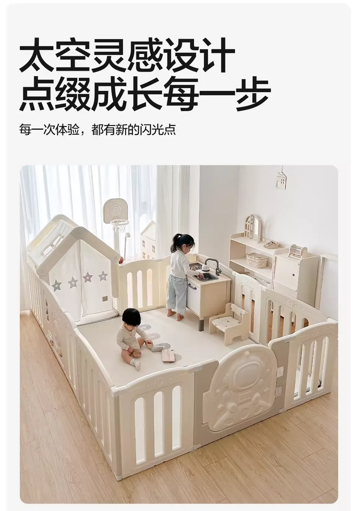 本品为品牌方定制款,购买需求请前往天猫或京东店铺下单(搜索:贝易宇航员小房子围栏)