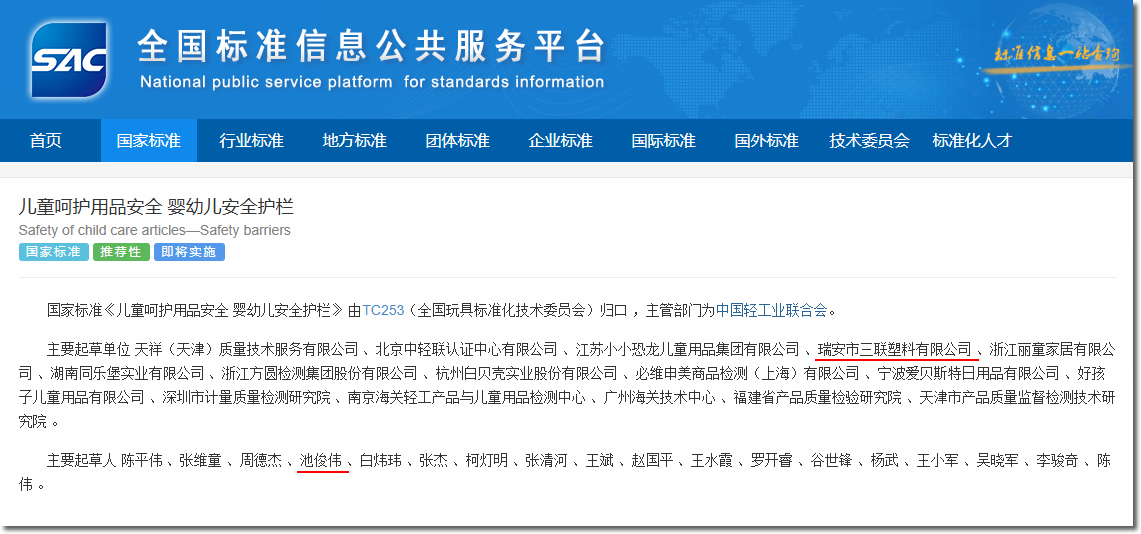 我司参与起草的《婴幼儿安全护栏》国家标准正式发布